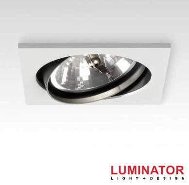 Встраиваемый светильник выполнен из алюминия серого цвета или окрашенного в черно-белый цвет. Светильник поворотный на 30° и 350°.