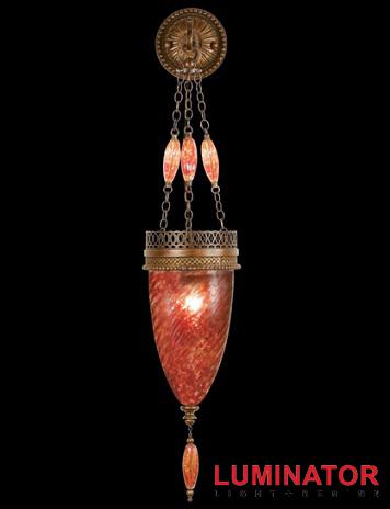 Настенный светильник. Коллекция Scheherazade выполнена в восточном стиле. Светильники изготовлены из бронзы темного цвета, плафон выполнен из высококачественного стекла ручной выдувки различных оттенков: красный, синий, зеленый или янтарный.