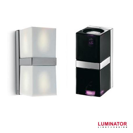 Настенный светильник. Рассеиватели выполнены из итальянского белого или черного стекла с добавлением свинца 24%. Основание - хромированный металл.