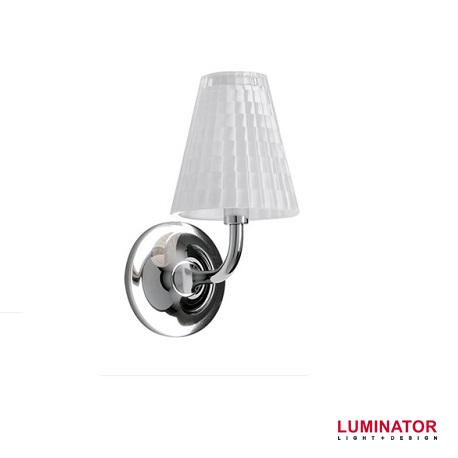 Настенный светильник. Плафон выполнен из итальянского белого стекла с добавлением свинца 24%. Основание - хромированный металл. Коллекция Flow состоит из подвесных, настольных, напольных, потолочных и настенных светильников.